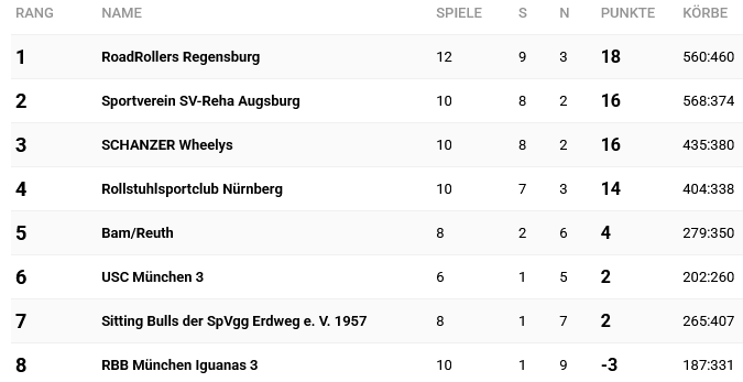 Beitrags-Autor:Charly Brunner Beitrag veröffentlicht:2026-03-07 Beitrags-Kategorie:Landesliga 2025/26 Niederlage gegen die Schanzer Wheelys mit 42:33 Das Münchner Team RBB Iguanas 3 ist nicht angetreten. Das Spiel wurde mit 20:0 für Regensburg gewertet. Tabelle Bayernliga am 8. März 2026 Schlagwörter: Bayernliga, BSA Nord-Ost Ingolstadt, Wheelys Ingolstadt Weitere Artikel ansehen Vorheriger BeitragErfolgreicher Spieltag in München-Giesing